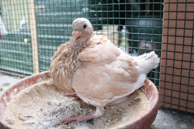 12-05-2013; weer terug van een weekje vakantie. De duiven zijn goed verzorgd. Ik ben blij dat iemand in mijn buurt dat wil doen tegen een geringe vergoeding. Er liggen inmiddels een stuk of 8 kleine jongen en alweer een paar grotere. Die waren net geboren toen ik weg ging. Ik kon ze gisteren nog net ringen. Met moeite kreeg ik de ringen er nog overheen. Een beetje vocht op het pootgewricht en voorzichtig doorduwen. Gelukkig is het bot van de jongen nog erg flexibel. Er liggen op dit moment een roodbonte en een vale, een witte met misschien nog wat gele vlekjes. Dat is nog niet helemaal te zien. Na zo'n weekje weg kost het wel weer even een paar uur voordat je alles weer "onder controle"hebt. Alles weer even schoon gemaakt, de administratie op orde etc. Tenminste, bij mij gaat dat zo. Ik heb natuurlijk wel behoorlijk wat duiven zitten, dus het duurt ook wat langer. Zo in het weekend vind ik het heerlijk om een paar uurtjes rond de volieres te scharrelen, de jonge duiven uit, en dan een oudere doffer laten vliegen en vooral veel kijken naar het gedrag van de duiven in en buiten de volieres. Ik heb ook weer een paar koppels gemaakt en dat is ook weer leuk om te zien. Kortom, het is gewoon genieten van de duiven. Je hebt hier in Putten wel geen loksport, maar zonder dat is het toch ook heel erg leuk. Ik kan alle duiven liefhebbers in het land die de tilduivensport missen aanraden zo met een bepaald ras te beginnen. Of misschien wel meerdere rassen. Wat je maar leuk vindt. Ik houd het bij de canaria's. Daar heb ik mijn handen al vol aan.